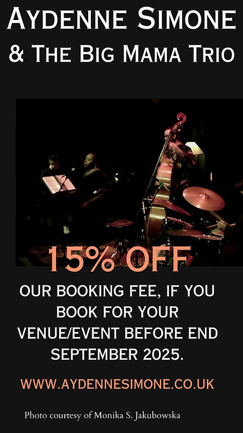 " Not only did Aydenne Simone bring to Peggy’s a fine, high-quality ensemble of musicians, not only did she put together a repertoire of soul-jazz classics, she also brought to Peggy’s our first full audience standing ovation. Aydenne Simone brought the house down at Peggy’s Skylight, her performance was electric, fantastic, and unforgettable.!"